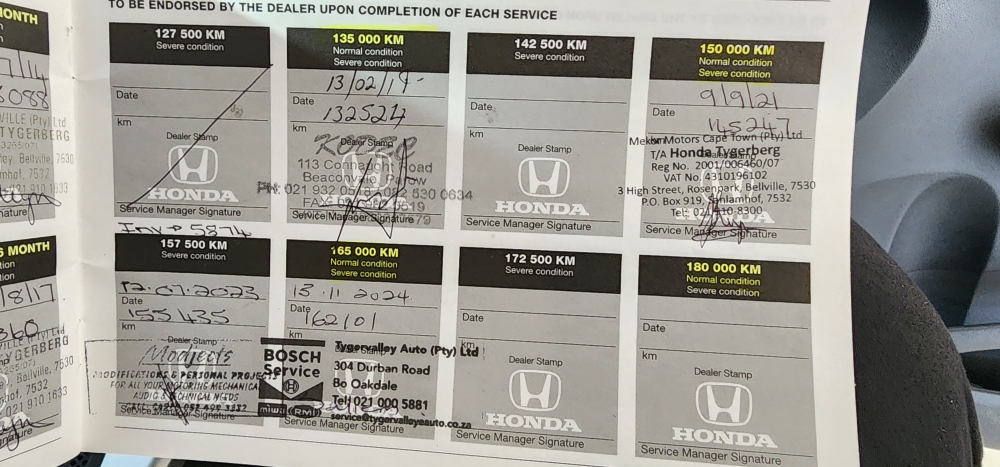 Service History Yes, Last Service 162101km 13/11/24 180 000km Service Due