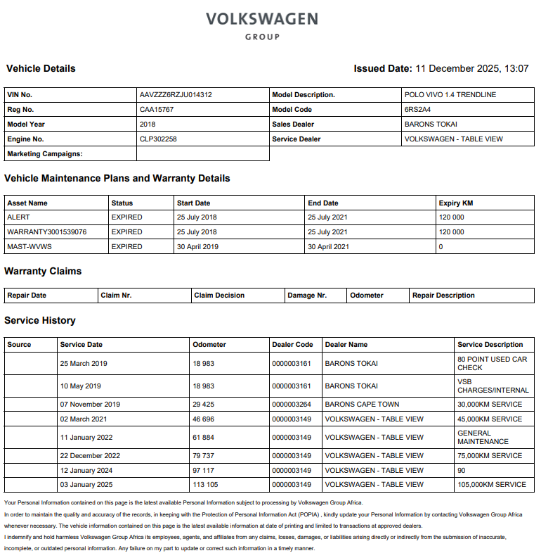 Volkswagen Polo Vivo 1.4 Trendline (5dr) (2018-02/2024-08)