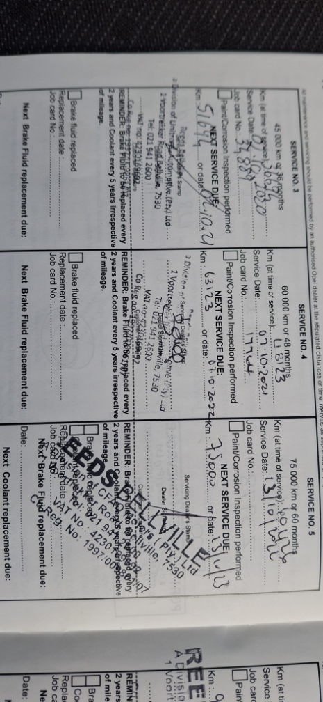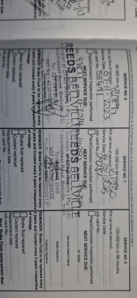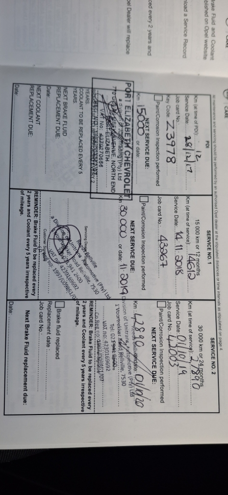 Service History Agents, Service due.