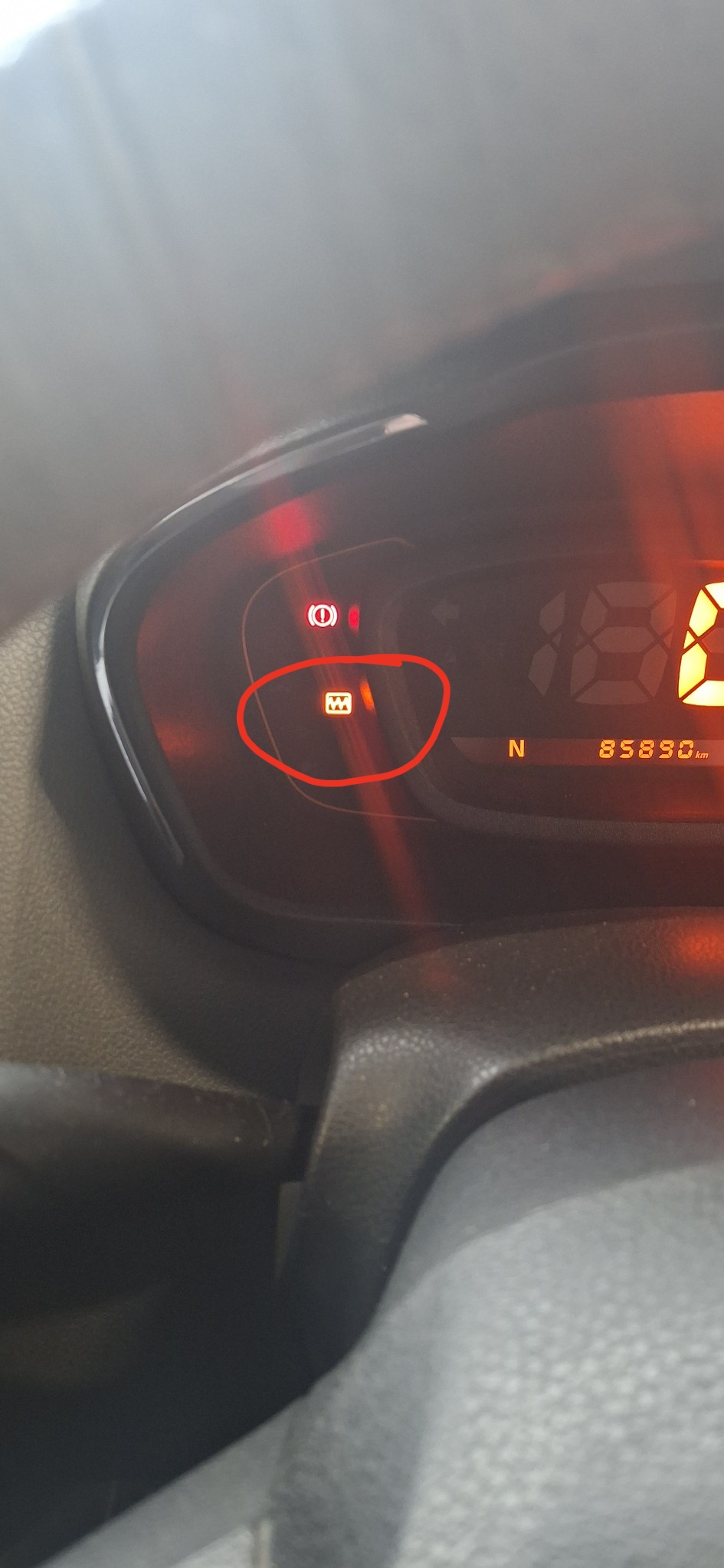 EngineR3 000ServiceCheck over and address a light that comes on when vehicle is idling, but goes away when you rev. Cause, extent and amount unknown. See image.
