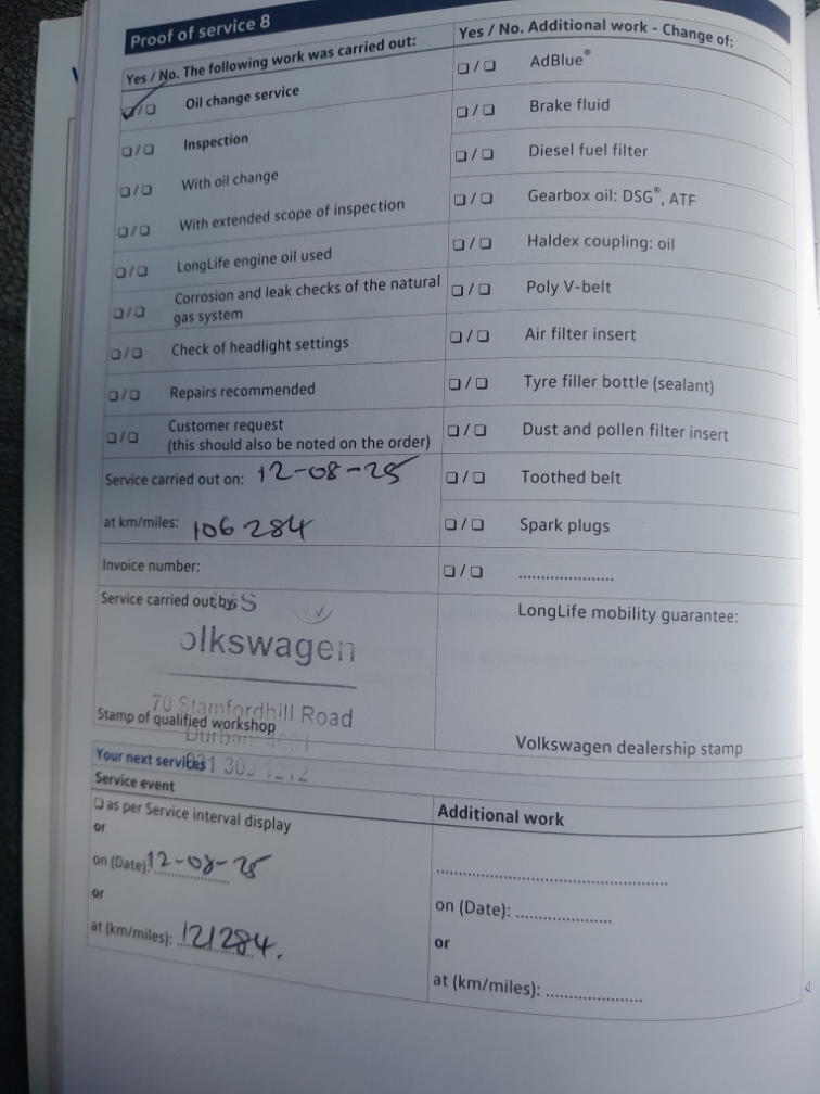 Agents, 26/01/2017 service km106284 12/08/2025