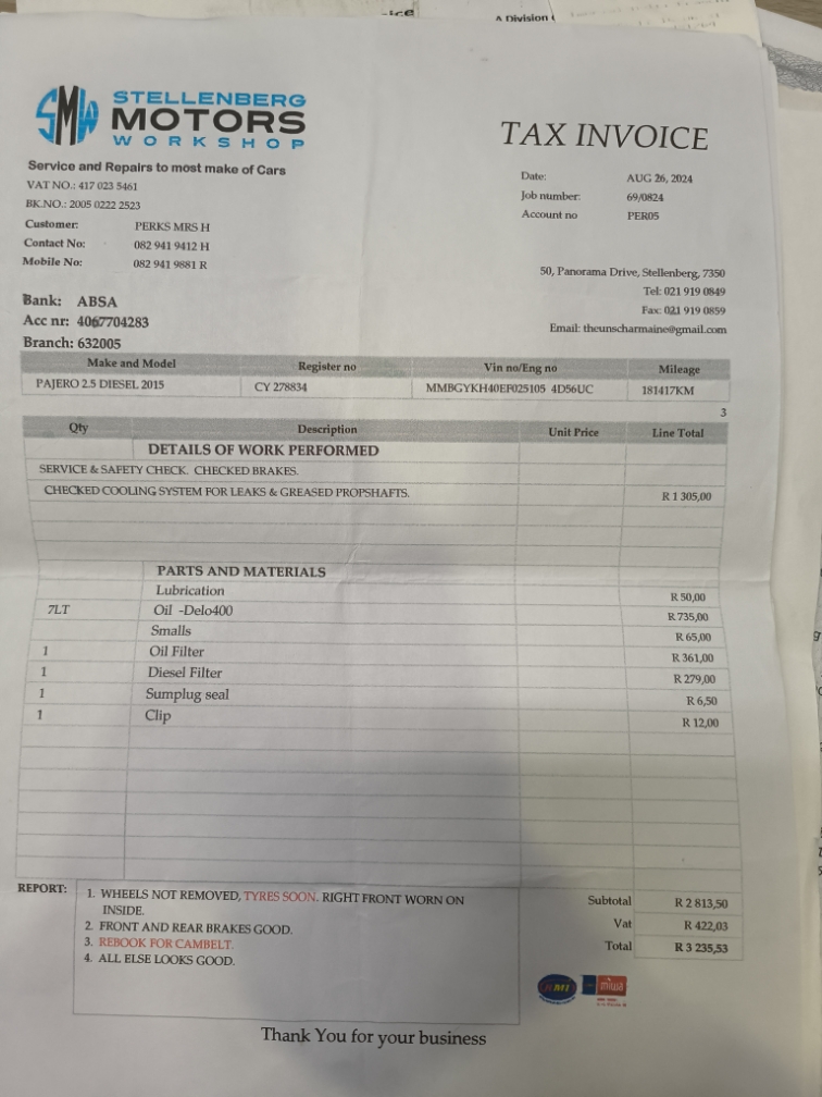 Yes, Last Service 194587 km. 31/01/25. Service due cost unknown