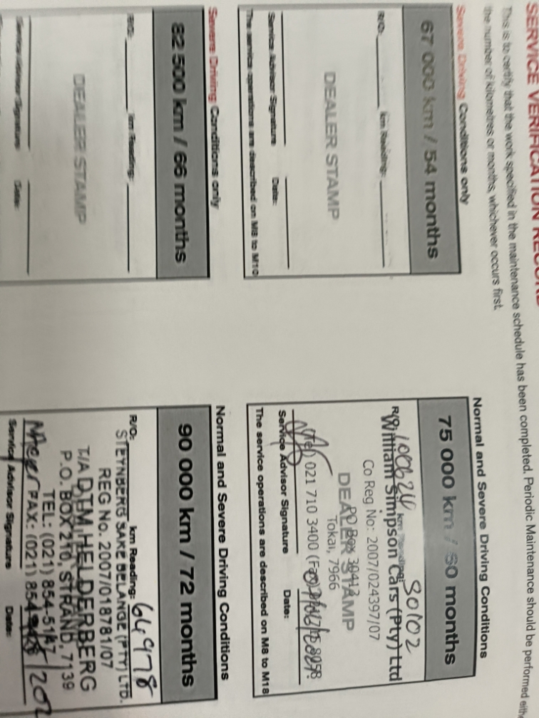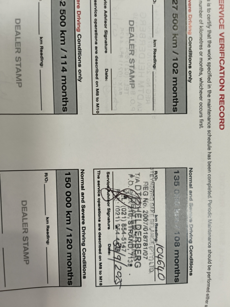 Vehicle in fair ware and tare condition for the year and kilos.. The vehicle does have small chip marks(stone chips) Needs a full buff. This is merely an indication/estimate. Allow R3000 for unforeseen cost. Please view the car before