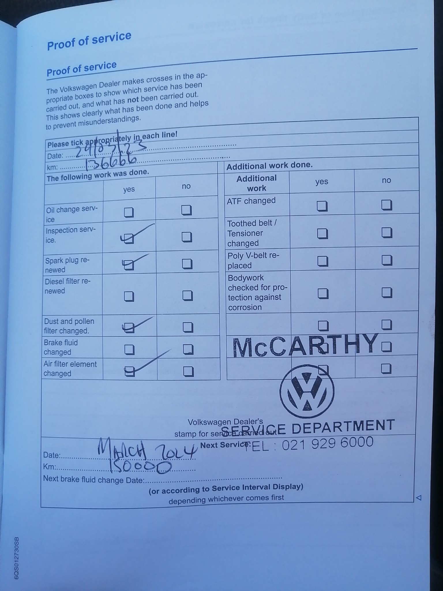 Service Plan Mileage